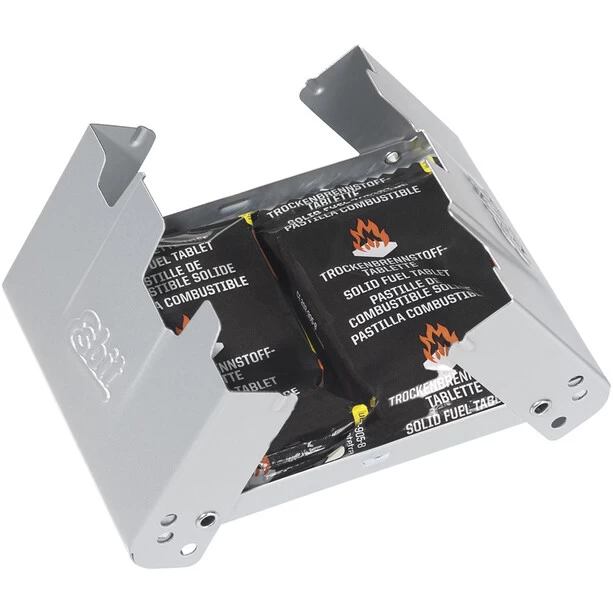 Le cuiseur de poche en acier galvanisé par électrolyse convient pour les casseroles, les tasses et les poêles et est idéal pour une tasse de café ou de thé rapide ou un repas entre les deux. La position de la cuisinière peut être sélectionnée en 2 étapes. La livraison comprend un pare-brise et 2 tablettes de combustible sec Esbit de 27g. Les comprimés sont chacun emballés dans un sachet tubulaire en aluminium.