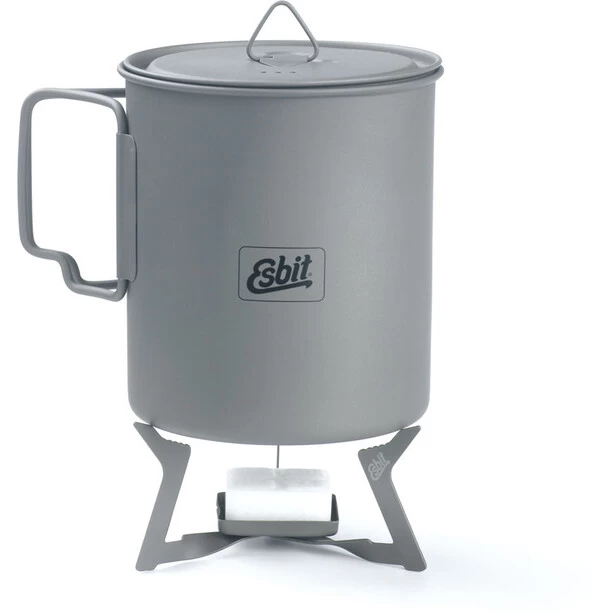 Support de cuisson pliable et ultraléger en titane pour utilisation avec les combustibles secs Esbit. Idéal pour chauffer des tasses ou des petits pots. Plié sensationnellement petit.