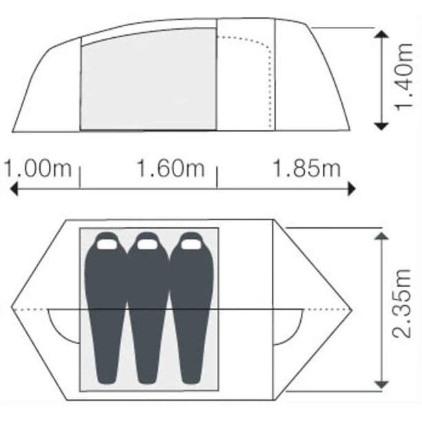 The cleverly revised Venus lll DLX Extreme definitely lives up to its name. For two people, the tent is a true luxury hostel with a generous sleeping area and plenty of space for luggage. The spacious vestibule at the front can be entered via the front entrance or the side door and also offers space for a pleasant stay in rainy days.
