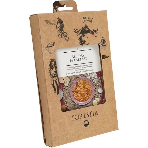 Traditional English breakfast served with baked beans, tasty sausages, bacon, diced omelette and tender mushrooms. Ready to Eat. Single serving.