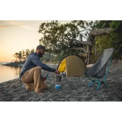 La chaise portable Chair Zero Highback est une chaise de camping légère et compacte à dossier haut d’Helinox. Il est idéal pour toutes les activités de plein air comme le camping, les randonnées en sac à dos ou à pied. Il ne pèse que 680 g, est peu encombrant et facile à transporter dans un sac à dos ou une poche. La Chair Zero Highback peut supporter jusqu’à 145 kg. Grâce à son alliage d’aluminium DAC spécialement développé, elle est extrêmement stable et particulièrement légère. Avec le système d’élastiques à l’intérieur qui assemble automatiquement les barres, le montage est un jeu d’enfant. L’assise et le sac de transport sont en nylon ripstop robuste et léger, résistant aux UV, qui peut être lavé à la main et séché sur une corde.