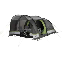 La tente familiale High Peak Brixen 4.0 de conception tunnel offre de l’espace pour 4 personnes et impressionne par ses nombreuses caractéristiques pratiques. Vous entrez à l’intérieur de la tente par l’entrée avant couverte. L’entrée est équipée d’une fenêtre grillagée. En plus de l’entrée principale, vous pouvez également entrer dans la tente par l’entrée latérale. Cette porte est également équipée d’un grillage pour empêcher les insectes d’entrer. À l’intérieur de votre tente, vous disposez d’un grand espace de vie/rangement qui vous donne beaucoup d’espace pour cuisiner, jouer, vous détendre et ranger votre équipement. Une grande quantité de lumière pénètre dans la tente par les fenêtres en film transparent. Si, en revanche, vous souhaitez bénéficier d’une plus grande intimité, vous pouvez préférer les rideaux.