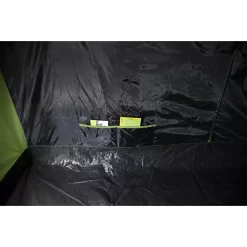 Le Brixen 4.0 dispose également d’une cabine de couchage assombrie. La cabine de couchage est séparée par une cloison zippée. Pour un meilleur confort de sommeil, la cabine de couchage est équipée d’une entrée Vario Vent avec des fenêtres à mailles. À l’intérieur de la tente intérieure, il y a des poches intérieures sur les parois latérales. Vous pouvez y ranger des magazines ou des articles similaires. Les autres caractéristiques de la Brixen 4.0 comprennent un porte-lampe, une ventilation permanente, des sangles de tension réglables, un sac de compression et un marqueur de position qui facilite l’accrochage de la tente extérieure.
