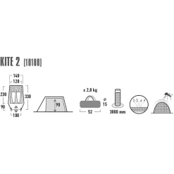 La Kite 2 de High Peak une tente tunnel légère avec une une bonne résistente au vent. Elle dispose d’ une entrée abritée et d’une avancée offrant beacoup d’espace de rangement. L’avancée est équipée d’un tapis de sol fixé à la tente intérieure, d’une fenêtre et d’une toile à pourrir qui protège la tente contre la pluie et la boue. Les arceaux rouges et le liseré rouge sont bien visibles au crépuscule. Les 2 ventilations permanentes assurent une bonne circulation d’air, même pendant des journées pluvieuses à condition de les garder toujours ouvertes. La tente intérieure bénéficie d’une longueur de 230 cm (!) et peut héberger 2 personnes. Elle est pourvue d’un tapis de sol en cuvette. La double porte avec paroi complète en filet de gaze garde les insectes gênants à distance et peut être réglée de l’intérieur à l’aide d’un rabat zippé. Ouvert complètement, le rabat se range rapidement dans la poche prévue à cet effet. Les poches intérieures et le porte-lampe complètent la tente. La tente intérieure est prémontée rendant le montage aisé et rapide. Avec un poids de seulement 2,8 kg et un petit volume d’emballage la Kite 2 est une tente qui convient parfaitement pour un camping actif et aventureux. La livraison comprend un sac de rangement, haubans et piquets, ainsi qu’ une notice de montage et d’entretien.