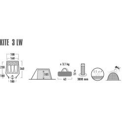 La tente intérieure est déjà accrochée et donc facile et rapide à démonter. La tente intérieure peut être décrochée à tout moment pour l’entretien. Le Kite 3 LW offre un hébergement et un espace pour les bagages pour un maximum de 3 personnes. Idéal pour le camping actif dans la nature.