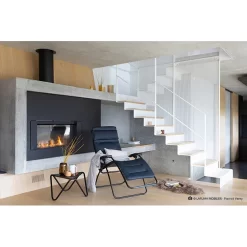 Le fauteuil RSXA Clip de Lafuma a un châssis en tubes d’acier peints de Ø 20 mm. La position des accoudoirs dans un relief de résine grainée peut être réglée en continu, et la position est fixée par un frein de blocage. Le couvercle est amovible, la suspension et la fixation du couvercle se font par le système de clip breveté. Le fauteuil est également doté d’un appui-tête ergonomique, réglable et amovible, d’un protège-pieds et d’un protège-sol.