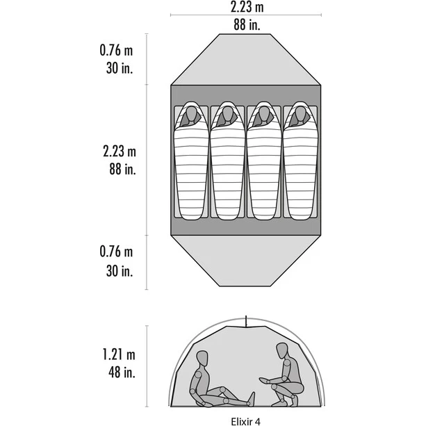 Avec une hauteur libre généreuse et une surface au sol optimisée pour quatre personnes, l’Elixir 4 offre le confort que vous souhaitez pour tout le monde, que vous campiez avec vos amis dans l’arrière-pays ou que vous voyagiez en famille en canoë dans la nature. Deux grandes entrées StayDry offrent un accès facile, tandis que les nouveaux vestibules, plus grands, offrent beaucoup d’espace pour votre équipement. Le tissu en maille respirante est combiné à un tissu solide pour plus d’intimité. Des haubans réglables et résistants aux intempéries sont fixés à la housse de pluie pour une plus grande stabilité en cas de besoin. La tente autoportante, facile à monter, est livrée avec de nombreux extras, dont une empreinte MSR et des filets de rangement intégrés sous le toit de la tente.