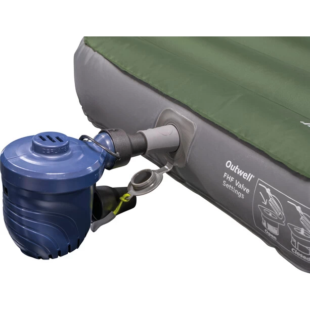 The Flat High Flow (FHF) valve adapter for Outwell pumps fits the 17mm Boston valve adapter of a pump and provides easy inflation/deflation of FHF equipped mats.