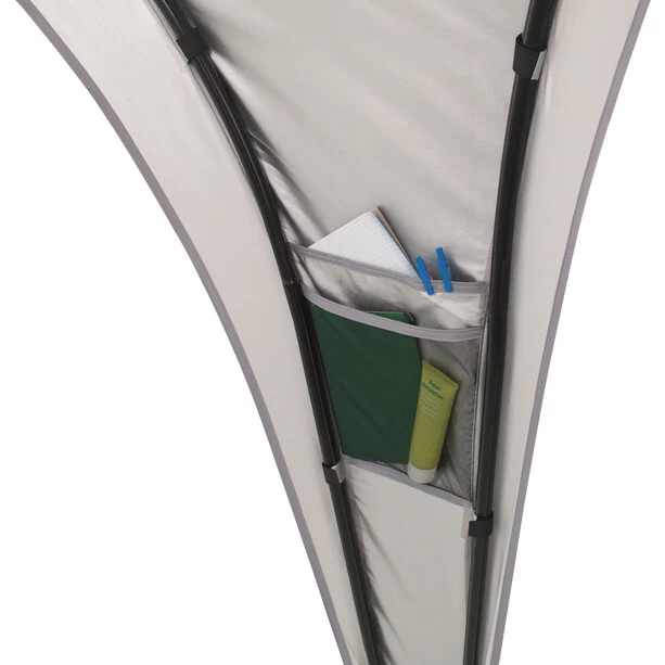 Le salon d’Ă©tĂ© Outwell Lounge L offre un abri polyvalent et autonome. La construction extrĂŞmement robuste et stable se caractĂ©rise par de grands points d’accès et une hauteur confortable pour se tenir debout. Grâce Ă l’ouverture de ventilation en haut, au point de suspension pour une lanterne au milieu et aux deux poches en filet, le Lounge offre une flexibilitĂ© pratique maximale. Le tissu utilisĂ©, Outtex 1500 Select Silver, offre un facteur de protection UV supĂ©rieur Ă 50. Afin de crĂ©er une plus grande zone de loisirs protĂ©gĂ©e, des abris mutuellement compatibles peuvent ĂŞtre reliĂ©s par une gouttière.