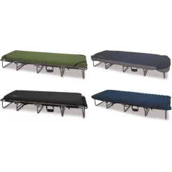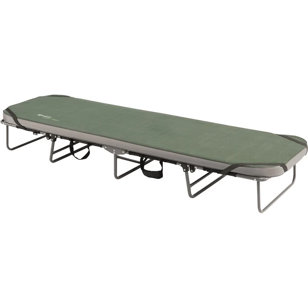 Grâce à leur pliage à plat et au profil fin pour le transport, les deux poignées en tissu du lit pliant Tostado vous permettent de le transporter facilement. Avec ses pieds au verrouillage facile et ses sangles de maintien élastiques à chaque coin, il est aussi simple à installer, puisqu’il s’ouvre rapidement pour former une base stable pour un matelas autogonflant. À 21 cm de hauteur, vous serez bien isolé du sol et vous disposerez de beaucoup d’espace de rangement utile dessous. Il est aussi beaucoup plus simple de sortir vos jambes du lit pour vous lever du sol de votre tente.