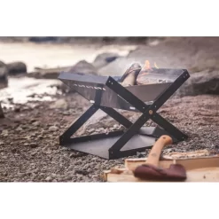 Rien ne remplace les sensations procurées par un feu de camp : le scintillement des flammes, le crépitement du bois. Cependant, dans de nombreux endroits, un feu en plein air est impossible car il peut endommager le sous-sol. Kamoto est un brasero portable pour des feux de camp qui ne laissent aucune trace. Utilisez-le avec du bois ou du charbon. Fabriqué en acier poudré, il se plie et se transporte facilement. Rapidement déplié, il est prêt à être allumé en quelques secondes. Kamoto dispose d’un foyer en acier inoxydable avec des protections latérales contre le vent et une arrivée d’air par le dessous qui assure une combustion efficace. Le bac à cendres protège le sol. Kamoto est disponible en deux formats et dispose d’une grille. Il constitue également la source de chaleur idéale pour les nouvelles poêles OpenFire de Primus. La version grand format accepte les bûches de 16″, taille standard aux États-Unis.
