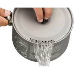 - le motif gravé sur le dessous du pot maintient le pot stable sur n’importe quel réchaud de camping