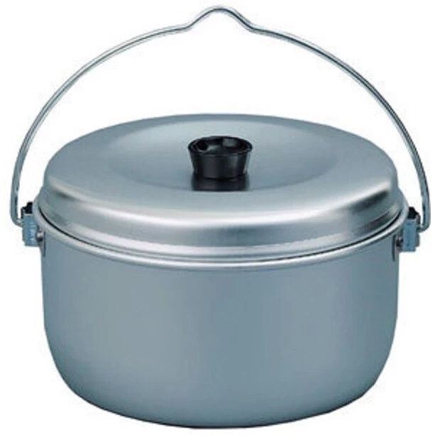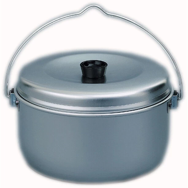 Pot classique en aluminium avec couvercle et poignée. Idéal pour cuisiner avec un brûleur à gaz.